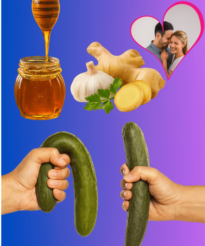 🔥 Want to reignite the spark? Garlic’s circulation benefits, ginger’s testosterone boost, and honey’s stamina-enhancing properties work together to support intimacy and performance. Cucumber keeps your system balanced, ensuring you’re ready for life’s passionate moments.