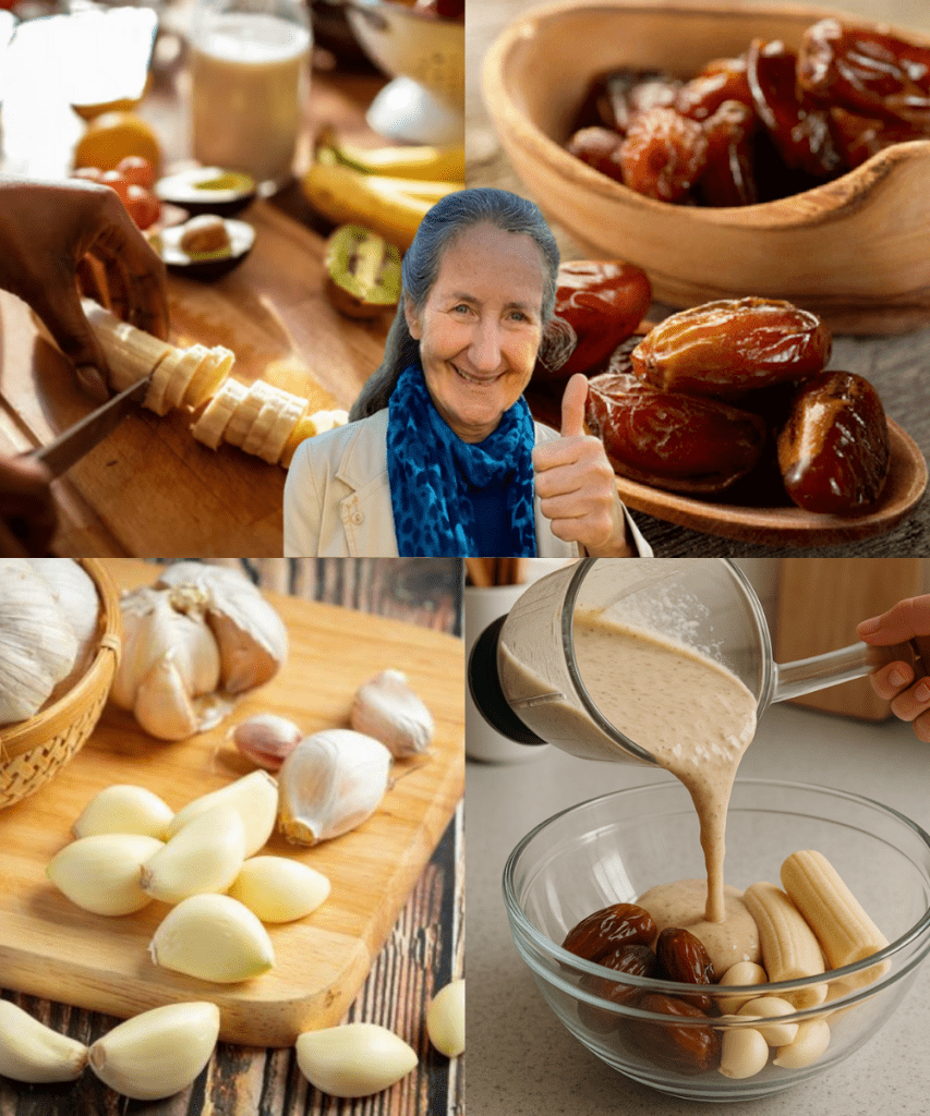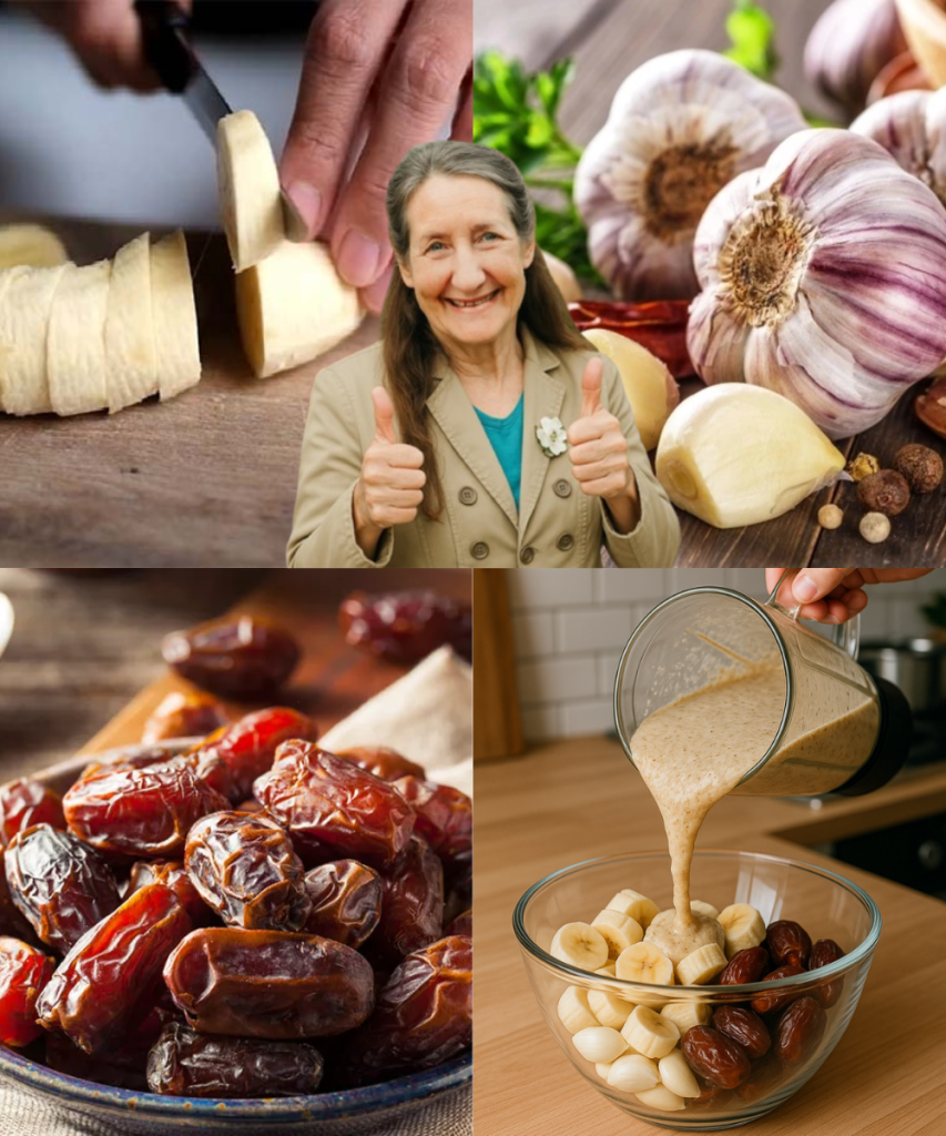 Bananas, garlic, and dates may seem like an unlikely trio, but their combined power is undeniable. This simple blend offers a natural, affordable way to boost your energy, strengthen your immunity, and support your digestion — all while tasting surprisingly good. Whether you’re blending them into a smoothie, crafting energy bites, or creating a unique breakfast spread, this trio is versatile enough to fit into any lifestyle.