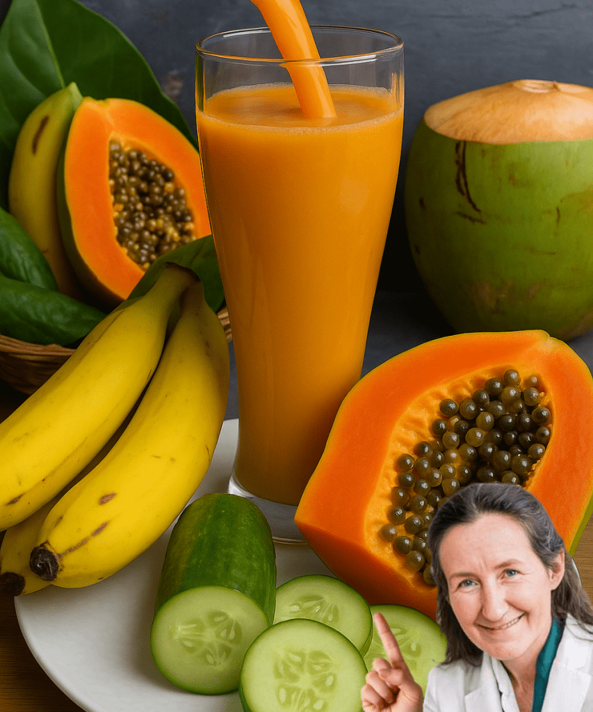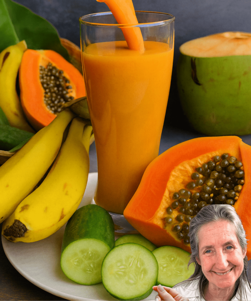 Ready to glow from the inside out? Blend up this elixir today and discover the transformative power of papaya, banana, cucumber, and coconut water. Your body, mind, and skin will thank you for it. Here’s to radiant health and timeless beauty, one delicious sip at a time!