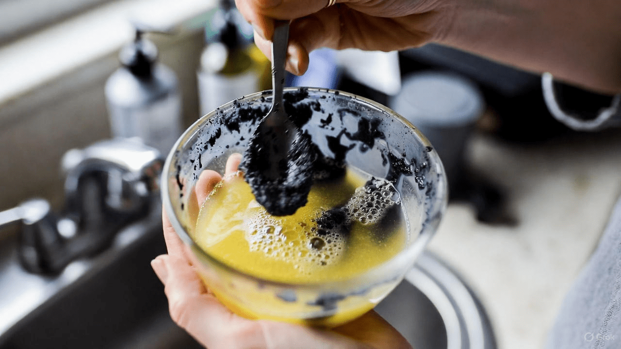 - Mix 1 tsp food-grade activated charcoal powder with 1 tsp fresh lemon juice
