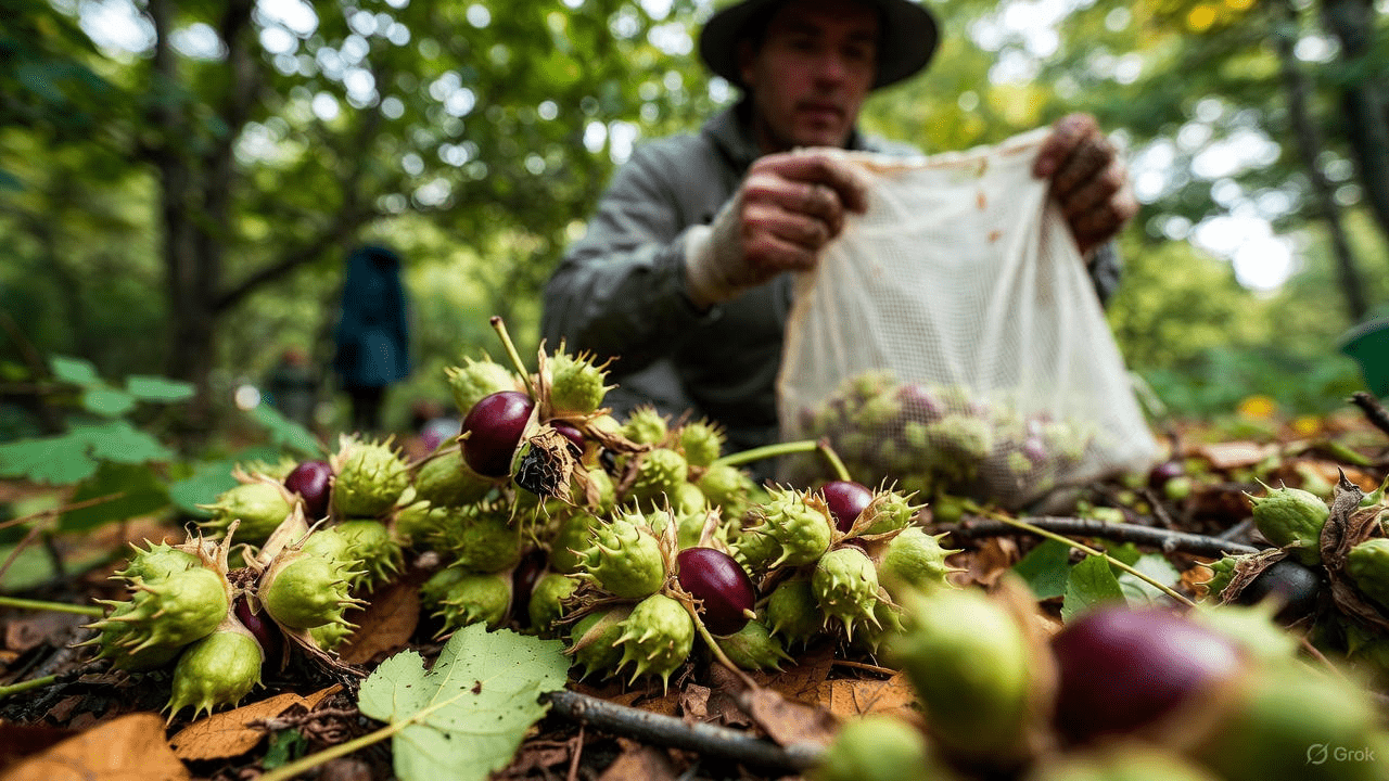 The horse chestnut tree (Aesculus hippocastanum) is a large, beautiful tree commonly found in temperate regions, known for its spiky green husks that protect shiny brown seeds inside. These seeds have been used in traditional European practices for centuries to support leg comfort.