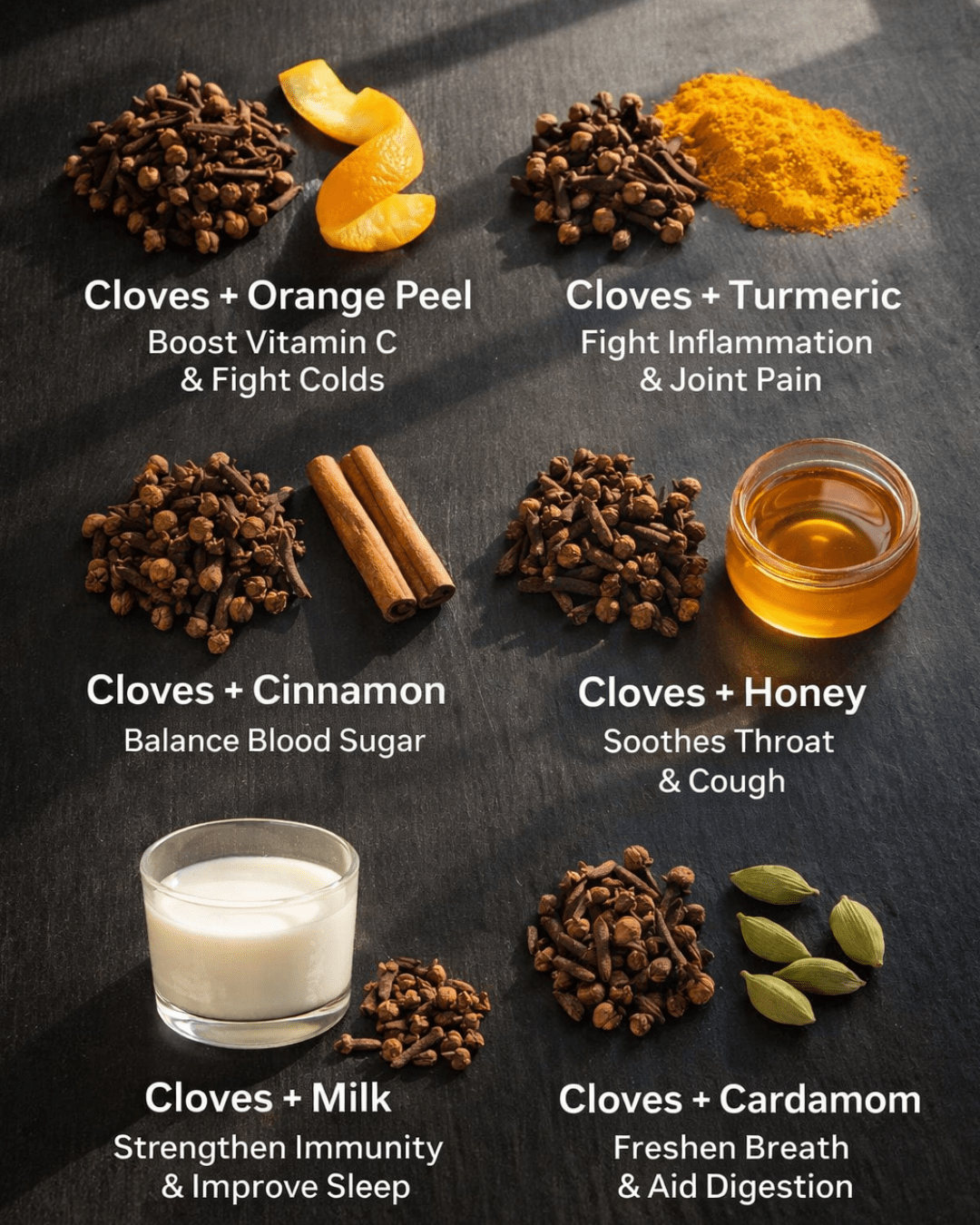 And for variety, experiment with pairings like the ones in your favorite infographic—cloves shine with turmeric, cinnamon, or honey.