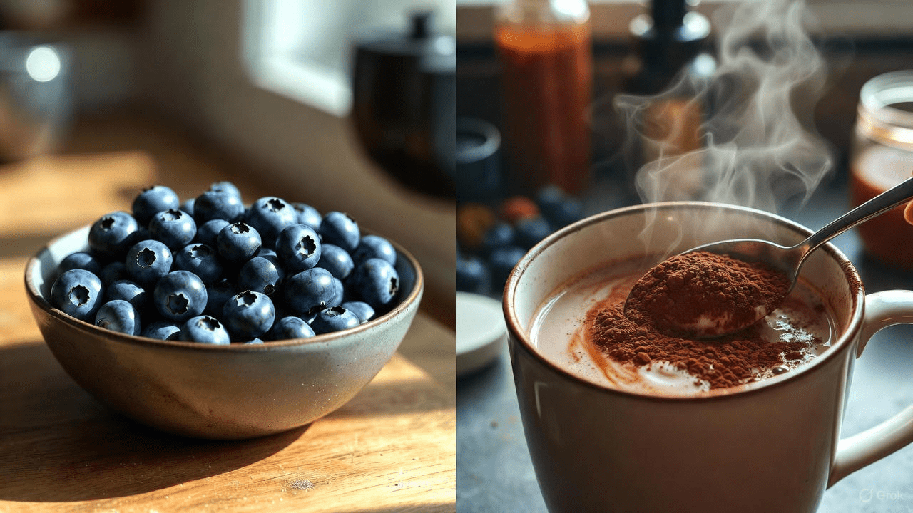 One habit gaining attention is enjoying a small serving of blueberries with a teaspoon of pure cocoa powder mixed into warm plant milk or yogurt about an hour before sleep.