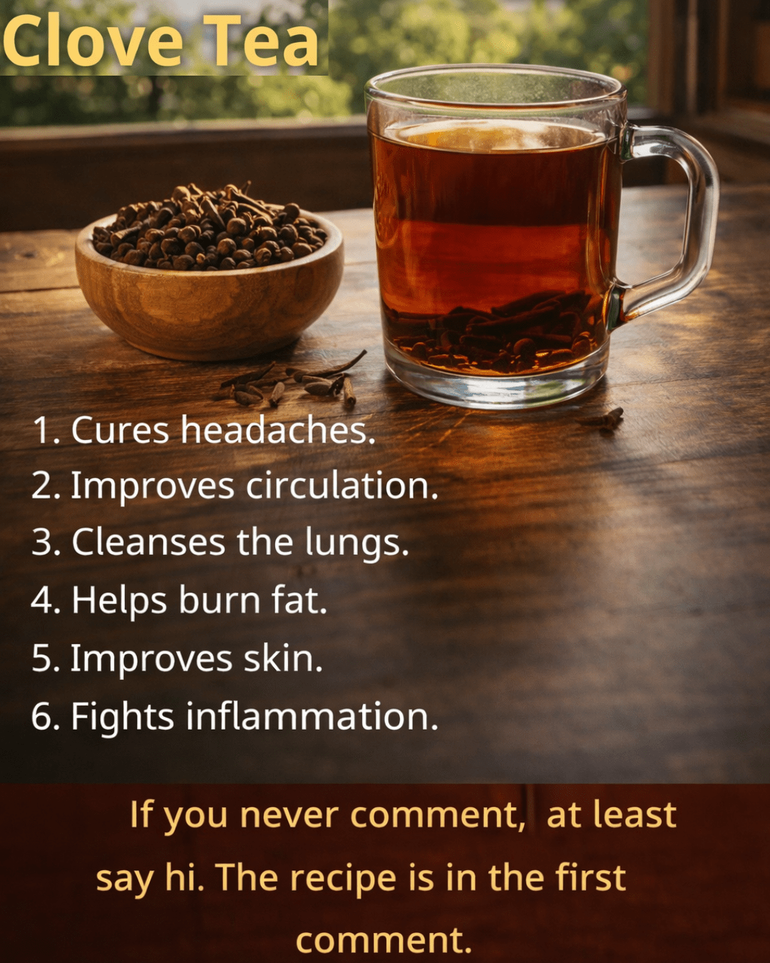 Here’s the interesting part: Unlike many herbal teas, clove tea has a bold taste that pairs well with other ingredients, allowing endless customization.