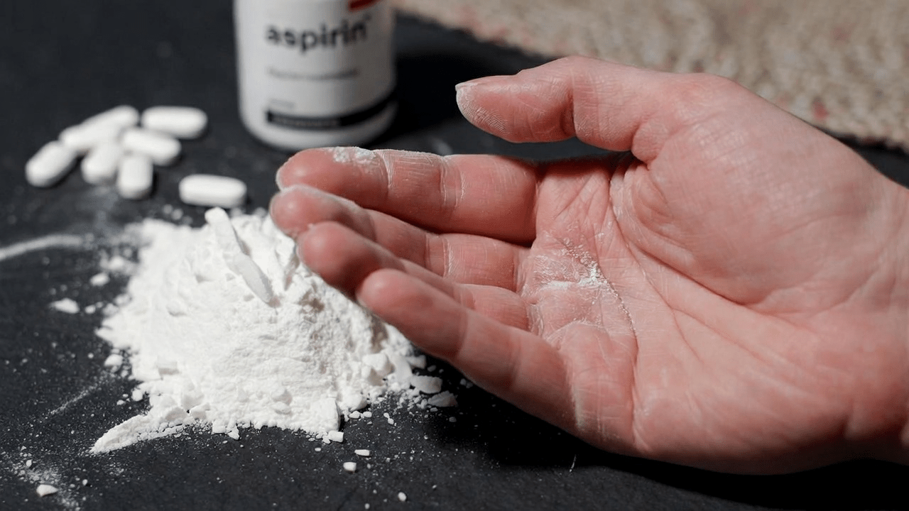 - Crush 2–3 uncoated aspirin tablets into a fine powder using a spoon or mortar.