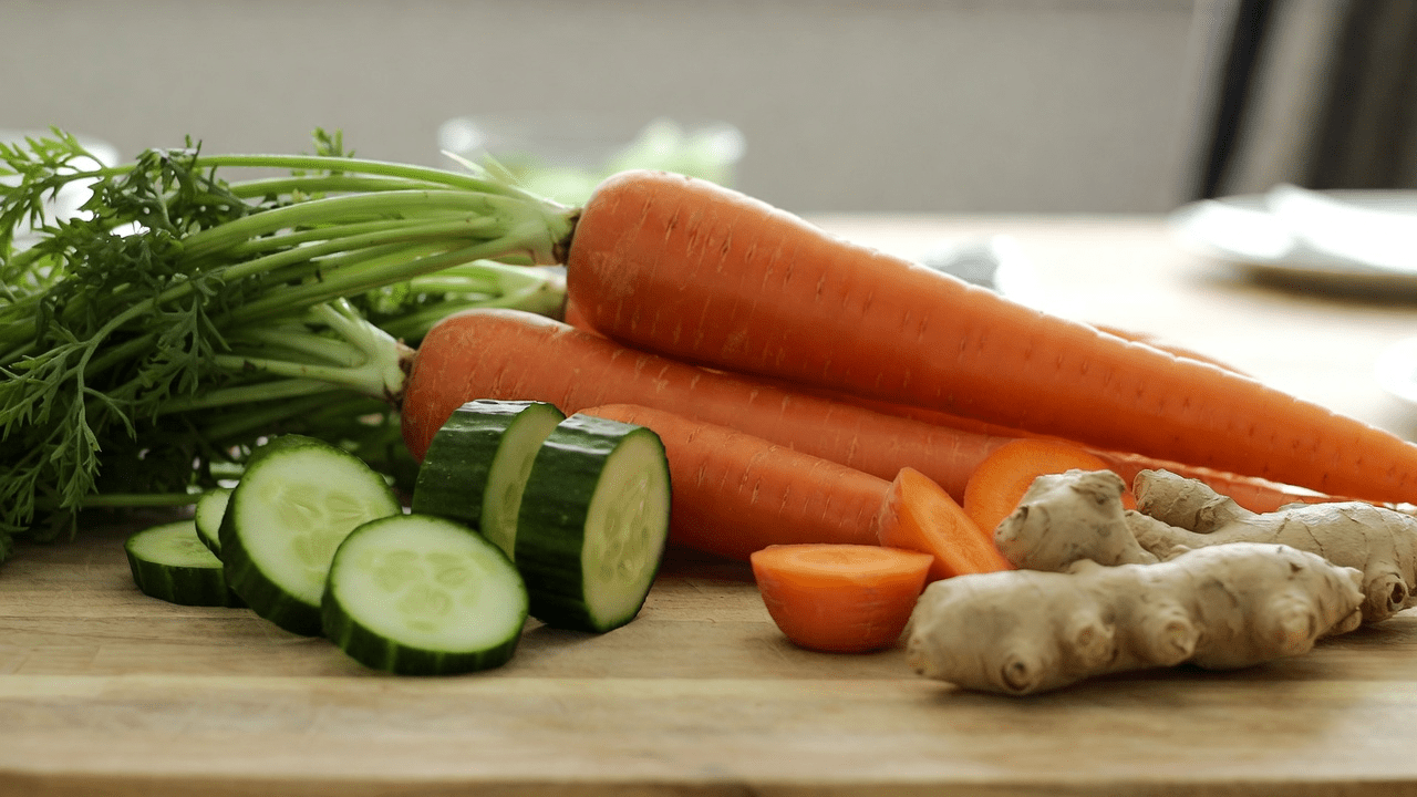 1. Chop the carrots, cucumber, and ginger into chunks that fit your juicer.