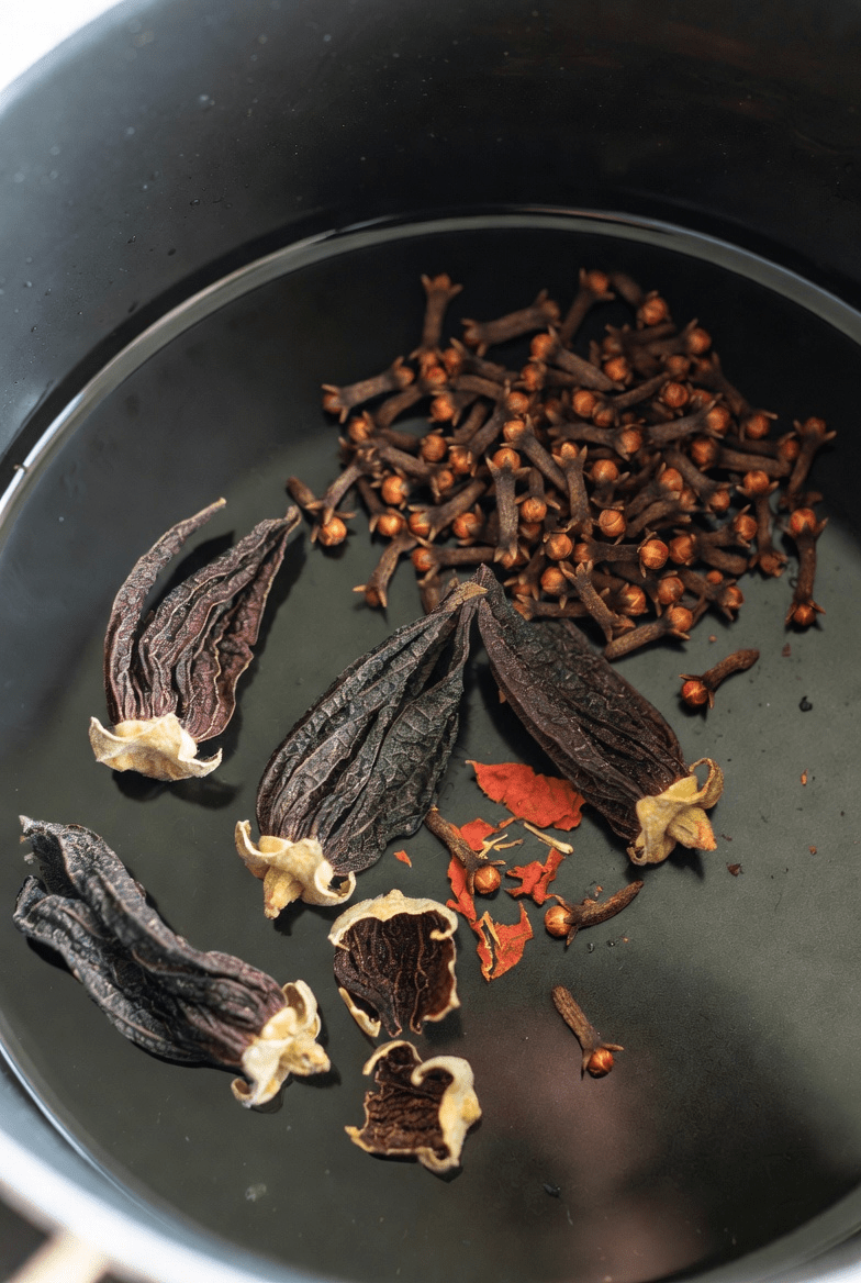 - Add hibiscus and cloves, then simmer for 5-10 minutes.
