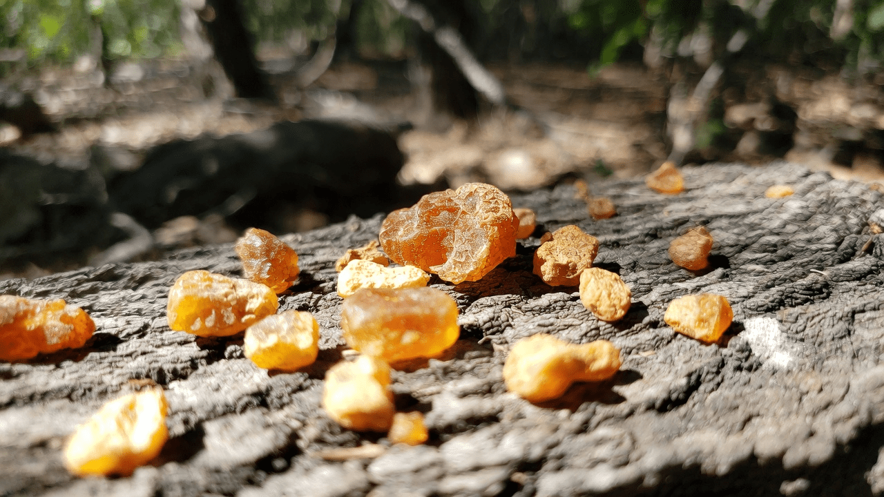 The resin is harvested by making incisions in the tree bark, allowing the sap to ooze out and harden into fragrant tears. These resin pieces are then processed into essential oils, extracts, or powders.