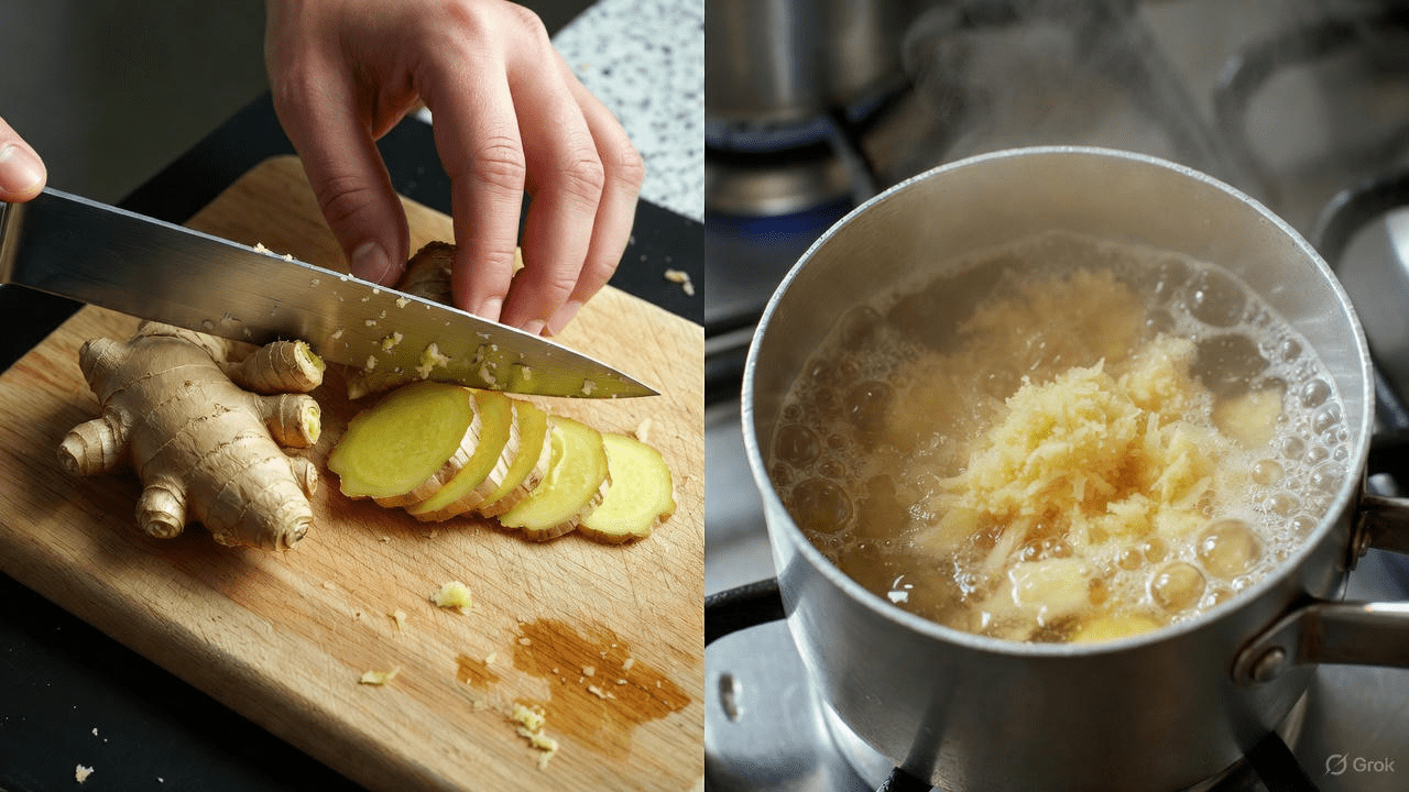This “grandma’s recipe” style approach uses fresh ginger—easy to find and inexpensive.