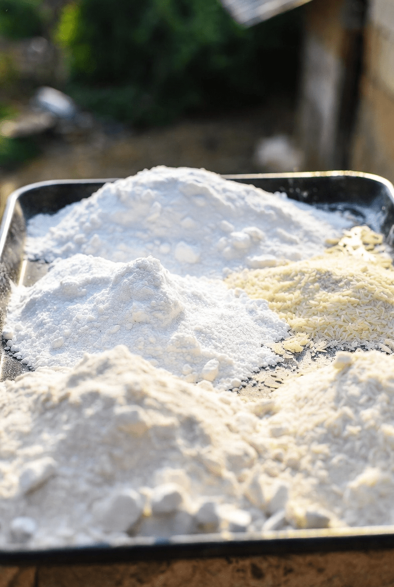 1. Gather ½ cup each of baking soda, powdered sugar, and rice flour (rice flour creates a fine texture similar to the white bowl visuals often shared online).