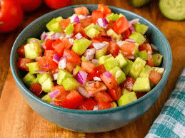 - Fresh tomato-cucumber salad with thin red onion slices and lime dressing